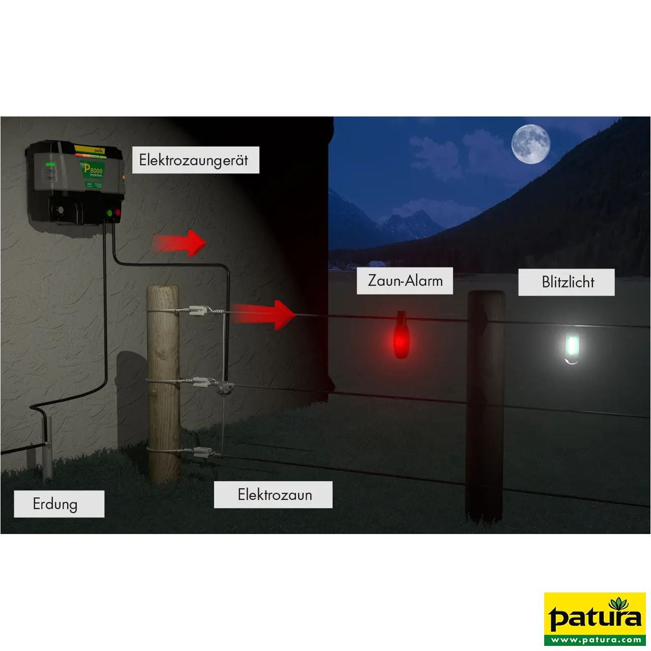 Een daling van de afrasteringsspanning wordt aangegeven door een rood knipperlicht
