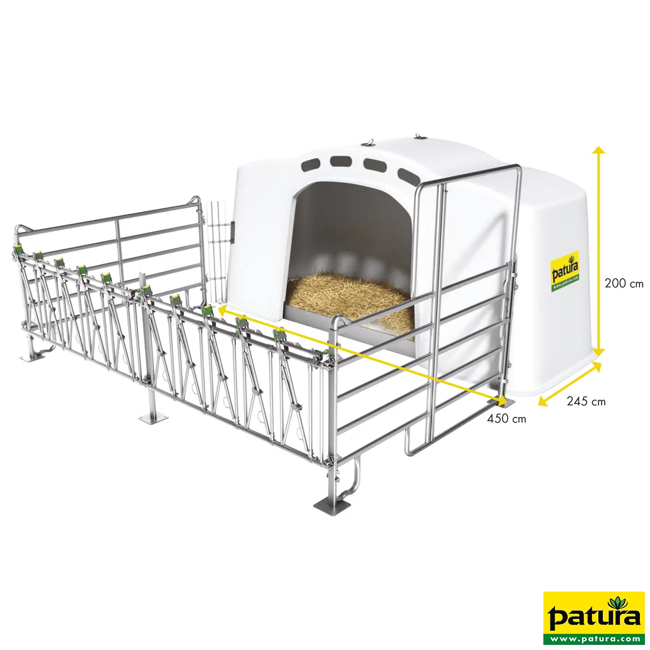 Het kalf kan kiezen tussen 2 klimaatzones: Frisse lucht buiten, bescherming tegen weersinvloeden binnen