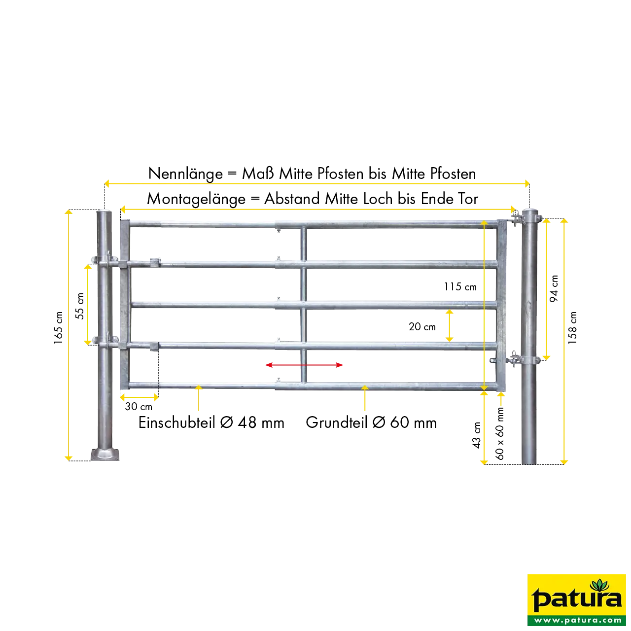 Basisdeel: massieve 2 buizen (6 mm), insteekdeel: 1 ½ buizen (48 mm)