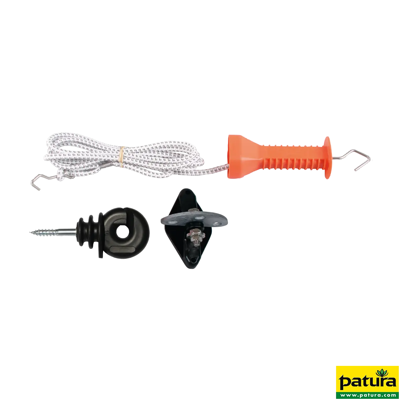 Compleet met 1 poortgreep, poortgreepisolator, ringisolator en 3, m elastiek touw