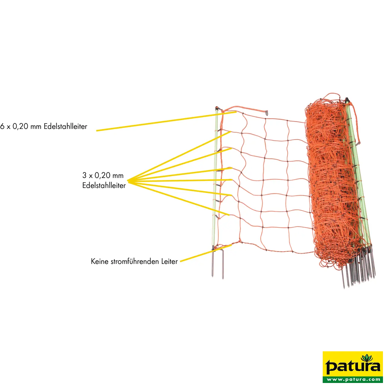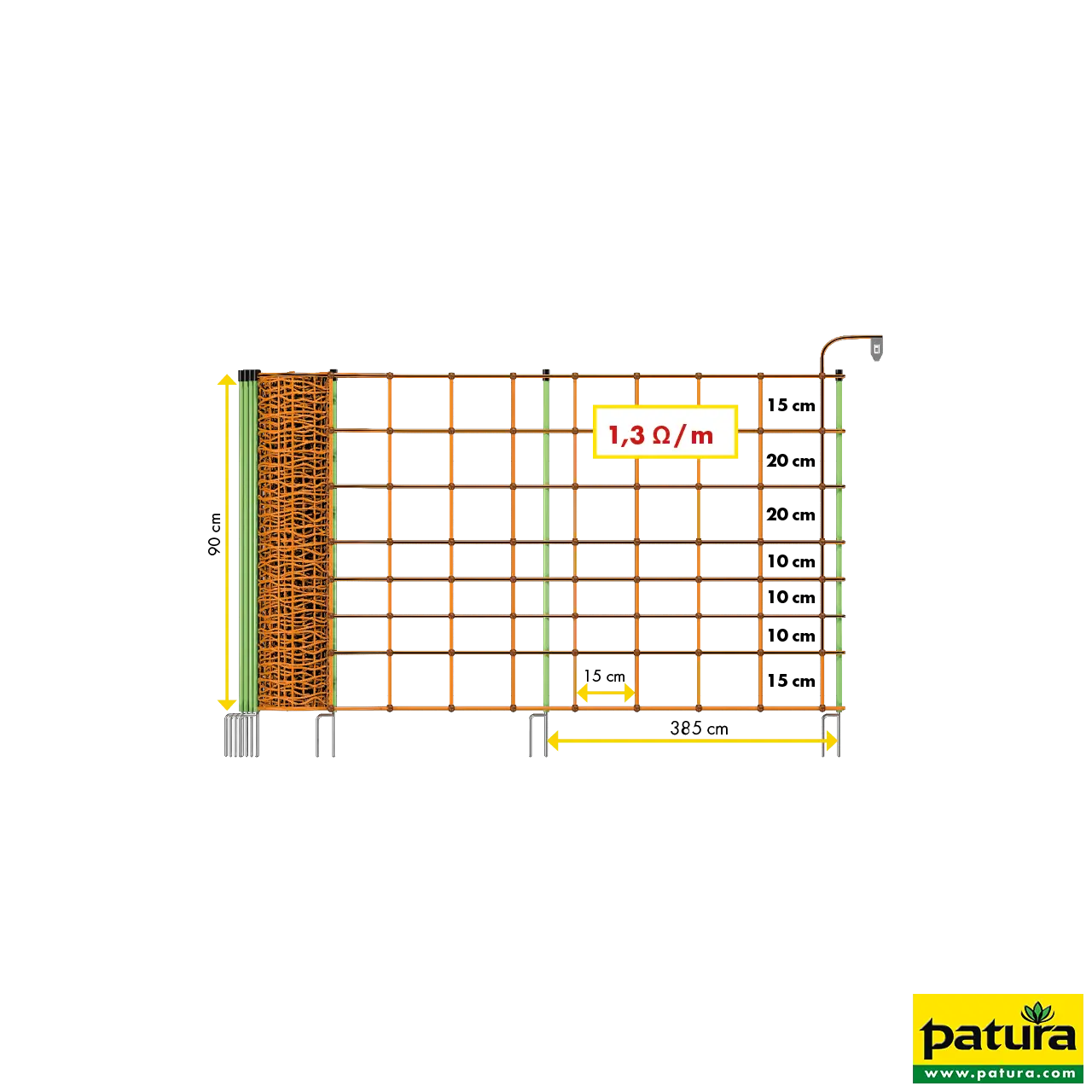 8 horizontale kunststof draden, waarvan de bovenste 7 stroomvoerend zijn