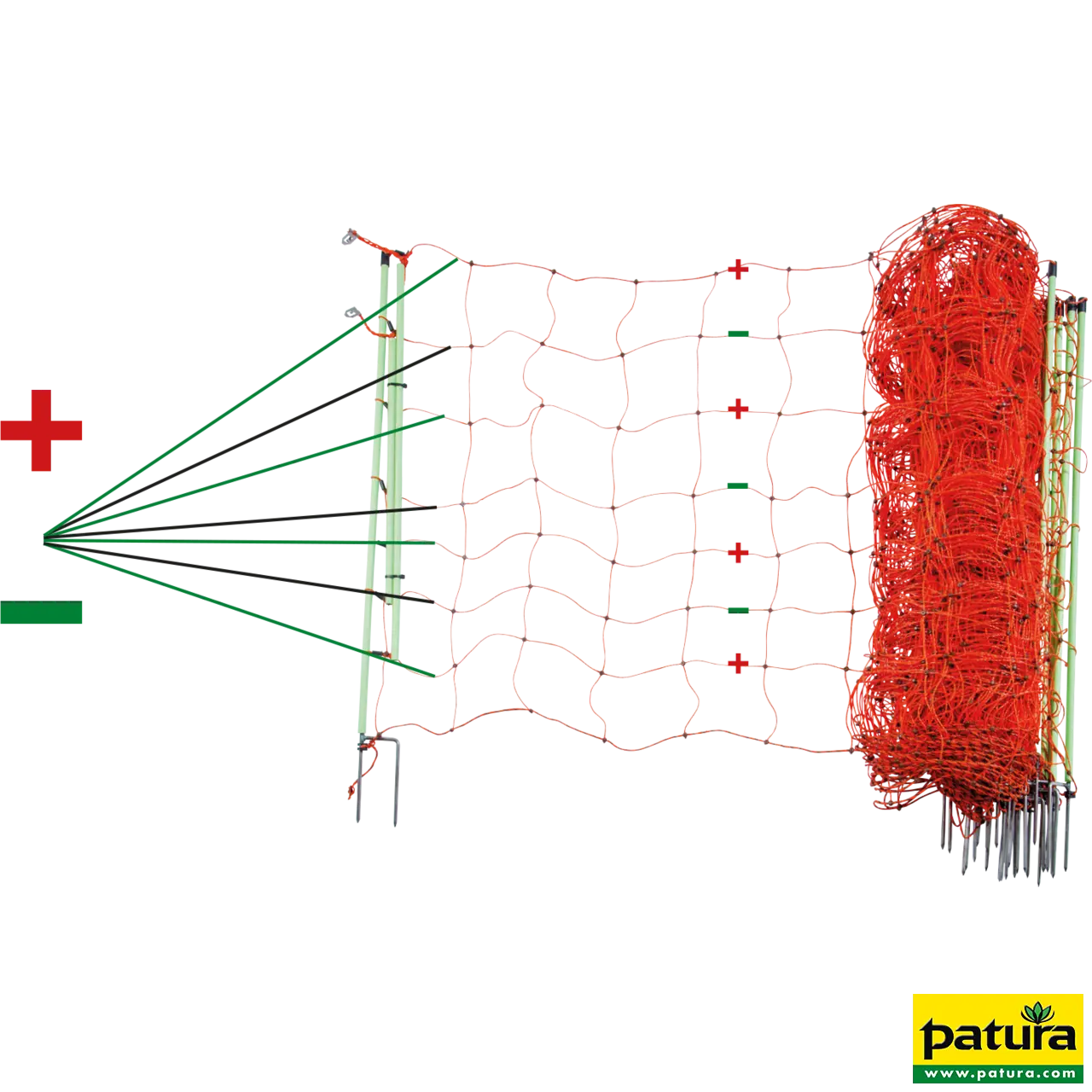 9 horizontale kunststof draden, waarvan de bovenste 8 stroomvoerend zijn