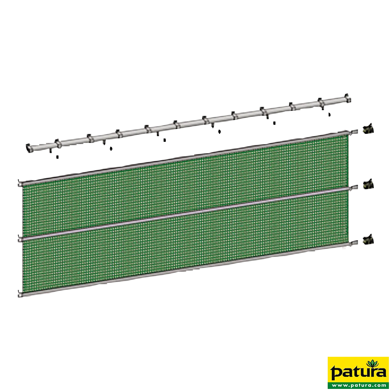 Windbreekspanelen kunnen ook worden gebruikt in combinatie met een rail als lichtgewicht gordijnconstructie (aanbevolen voor hoogtes tot 2, m). Afstand tussen de rollen elke 1, m (beugel met enkele rol inbegrepen)