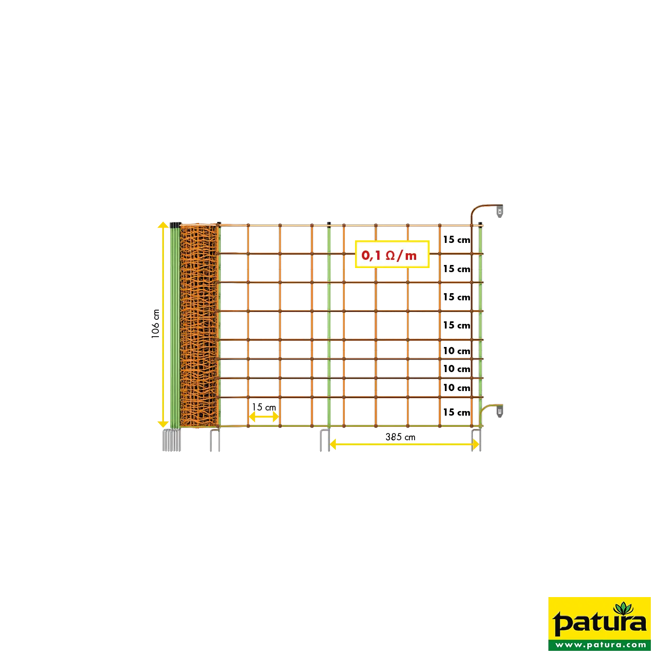 9 horizontale kunststof draden, waarvan de bovenste 8 stroomvoerend zijn